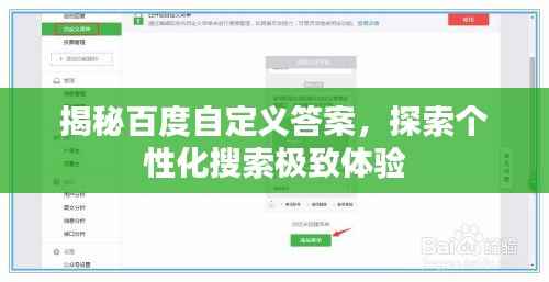 “百度一下自定义答案”是百度搜索在智能化时代的一大创新,它通过大数据、人工智能等技术,为用户提供精准、个性化的搜索结果,满足了不同用户的需求,相信在未来,随着技术的不断进步,“百度一下自定义答案”将为更多用户带来更好的搜索体验。