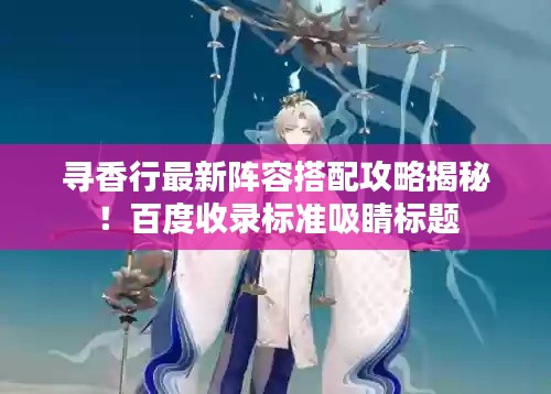 转载请注明来自武汉雷电雨防雷工程有限公司,本文标题:《寻香行最新阵容搭配攻略揭秘!百度收录标准吸睛标题》
