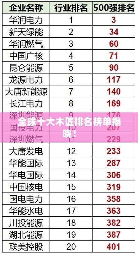 木匠这一职业历史悠久,技艺精湛,在世界各地都有着卓越的代表,以下是世界木匠排名前十名,他们凭借卓越的技艺和独特的创意,成为了木匠行业的佼佼者。