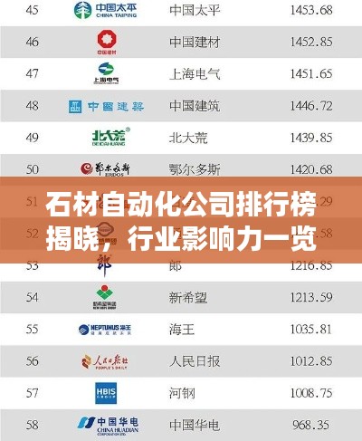 随着科技的不断发展,石材自动化行业也在逐渐壮大,市场上涌现出众多石材自动化公司,它们凭借先进的技术、优质的产品和服务赢得了客户的信赖,本文将针对石材自动化公司的排名及其行业影响力进行详细介绍。