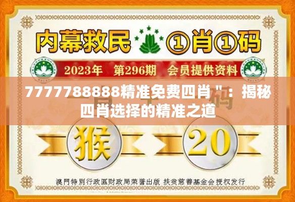 “7777788888精准免费四肖”的提出,不仅标志着澳门博彩业在技术创新领域迈出的重要一步,也为全球博彩业的发展提供了新的思路。未来,澳门将继续在这一思路的指导下,深化政策研究,推动博彩产业的健康、可持续发展。