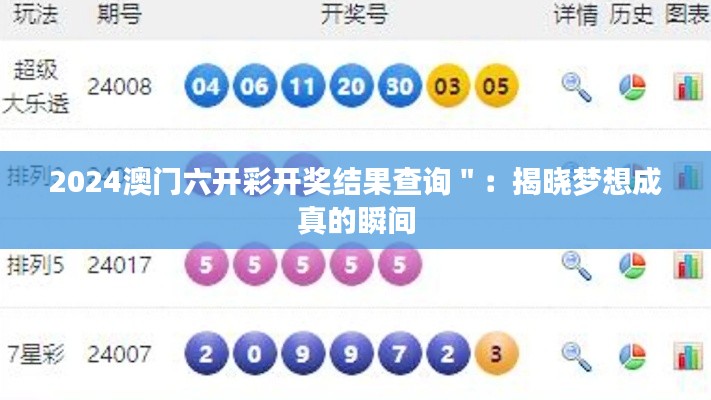 在这个温暖的春日,我们见证了无数梦想成真的瞬间。在这个充满惊喜的时刻,2024澳门六开彩开奖结果查询:揭晓梦想成真的瞬间,为许许多多的朋友们带来了欢乐和激动。六年来,澳门六开彩以其独特魅力,吸引了成千上万的人参与其中,为澳门与各方共同创造财富的传奇。今天,就让我们一起走进澳门六开彩的颁奖典礼,共同感受这个瞬间所带来的无限惊喜与温暖。