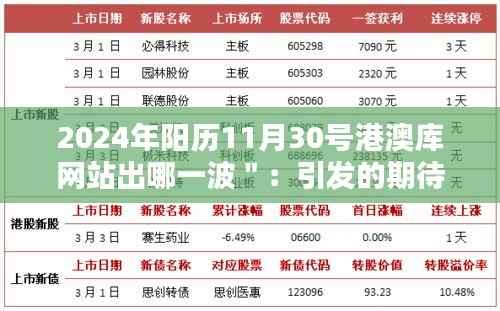 港澳库网站作为连接澳门特别行政区政府与民众的重要桥梁,在资料共享、政策发布和民众互动等多个层面承载着重要职能。目前,“2024年阳历11月30号港澳库网站出哪一波”已经成为网络讨论的热点,人们纷纷猜测这一波新推出可能是全新的数据库模块,亦或是对现有服务的一次全面升级。