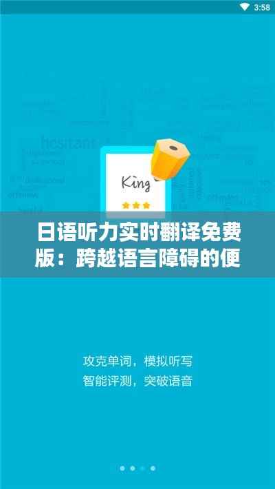 日语听力实时翻译免费版是一款极具实用价值的工具,它为日语学习者提供了便捷的学习途径。随着人工智能技术的不断发展,相信未来会有更多类似的产品问世,助力更多学习者跨越语言障碍。在这个信息时代,掌握一门新的语言,不仅能够拓宽我们的视野,还能为我们的生活带来无限可能。让我们一起努力,用日语听力实时翻译免费版开启美好的语言学习之旅吧!