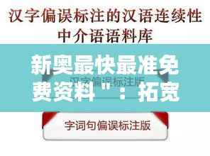 近年来,随着信息技术的迅猛发展,人们获取信息的方式越来越多样化,然而面对海量的数据信息,如何快速获取准确、有价值的数据成为了一个重要的课题。在这样的背景下,“新奥最快最准免费资料”以其最快的速度和最高的准确率,为用户提供了一个便利的方案,既能满足对于实时信息的需求,也可以节约时间和成本,实现高效学习的优质选择。